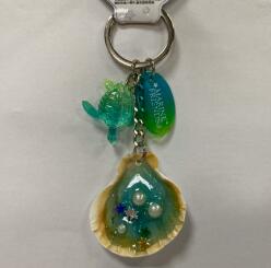 KA-1705F 天然珍珠貝殼+大海龜可愛造型鑰匙圈