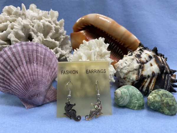 SHER-036 黑珍珠貝海馬雕刻耳環