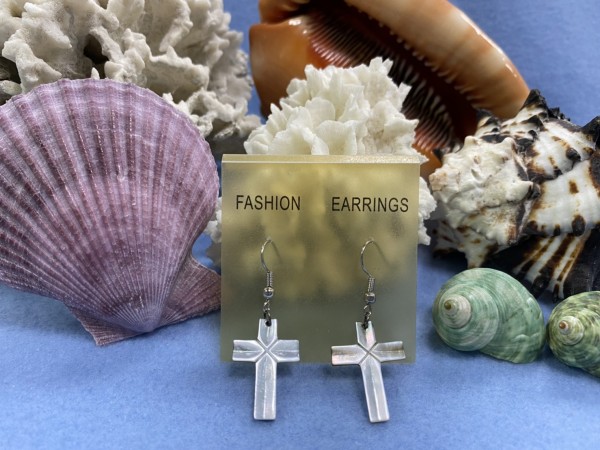 SHER-045 黑珍珠貝十字架雕刻耳環