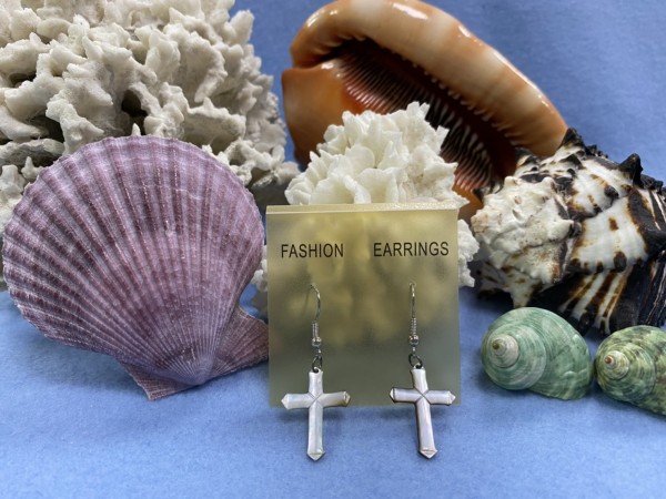 SHER-046 黑珍珠貝十字架雕刻耳環
