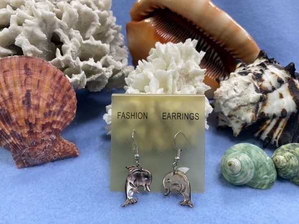 SHER-049 黑珍珠海豚雕刻耳環