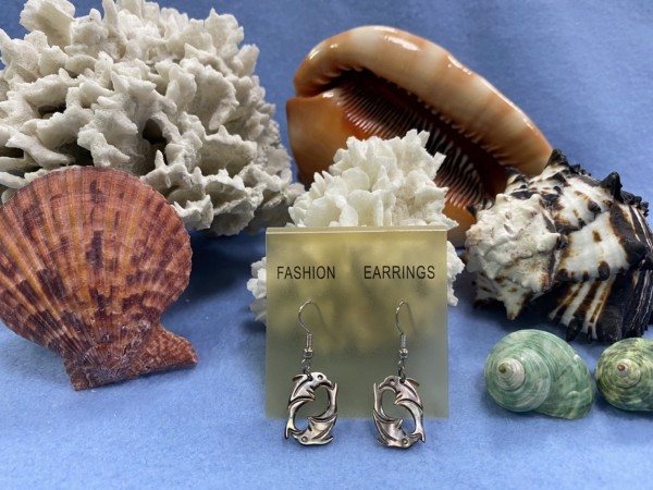 SHER-053 黑珍珠海豚雕刻耳環
