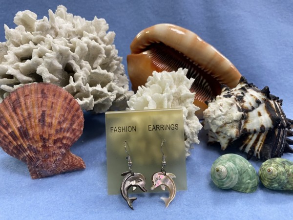 SHER-064 黑珍珠海豚雕刻耳環
