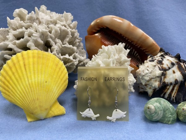 SHER-075 貝殼雕刻海龜耳環