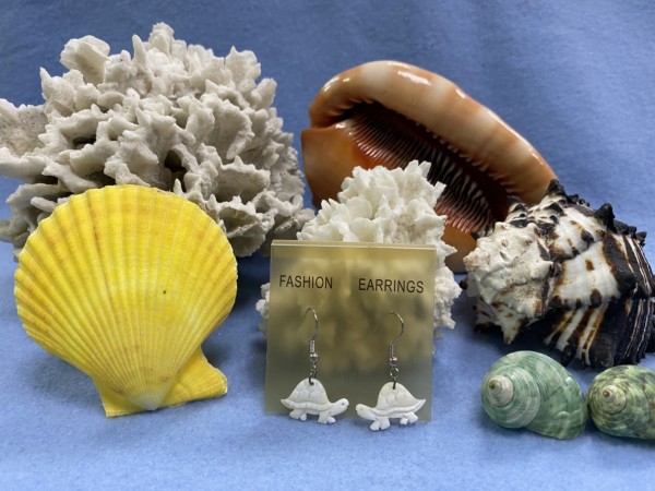 SHER-076 貝殼雕刻海龜耳環