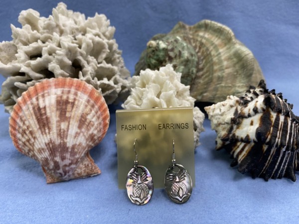 SHER-091 黑珍珠貝鳳梨雕刻耳環