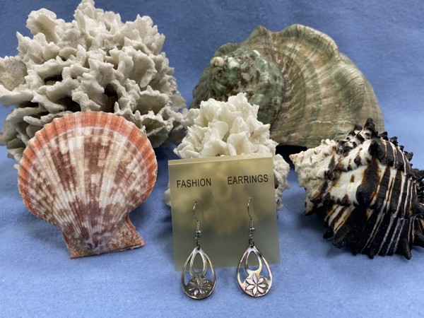 SHER-094 黑珍珠貝七瓣花雕刻耳環