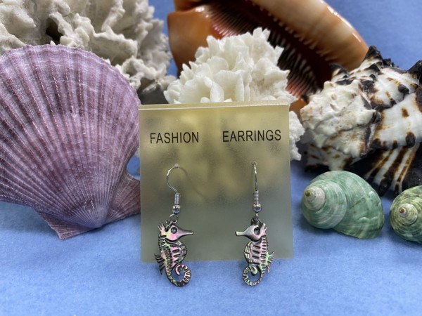 SHER-097 黑珍珠貝海馬雕刻耳環
