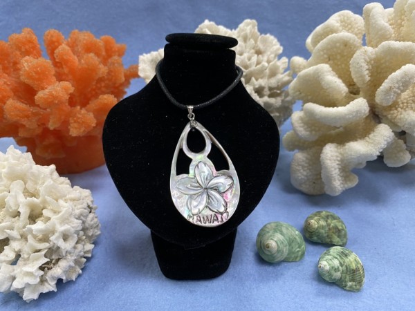 XMSN-034 黑珍珠貝手工雕刻五瓣花加Hawaii字樣項鍊