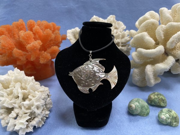 XMSN-042 黑珍珠貝手工雕刻熱帶魚項鍊