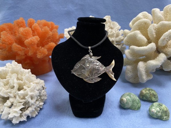 XMSN-043 黑珍珠貝手工雕刻熱帶魚項鍊