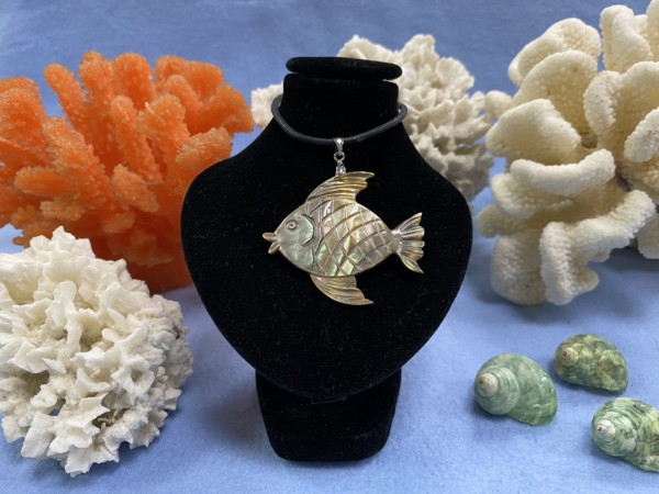 XMSN-046 黑珍珠貝手工雕刻熱帶魚項鍊