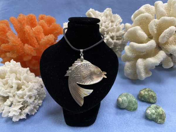 XMSN-047 黑珍珠貝手工雕刻熱帶魚項鍊