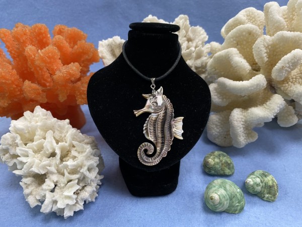 XMSN-084 黑珍珠貝手工雕刻海馬項鍊